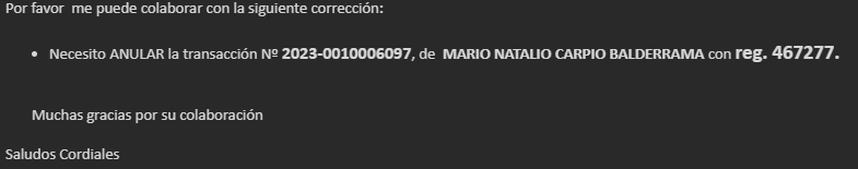 Eliminaríamos la fila 5 del primer resultado y en el segundo resultado cambiaríamos el estado a de "tstd_codigo" al que nos indique la lic. Ninoska