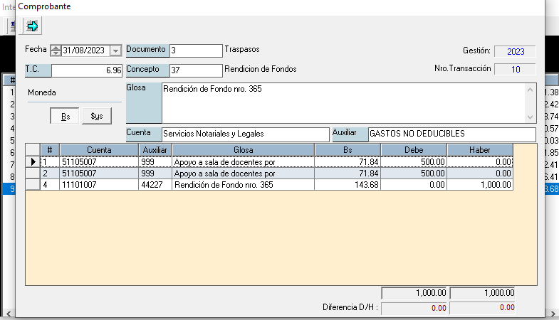 Paso 3: Dar doble clic en la glosa requerida y ver si cuadre la información