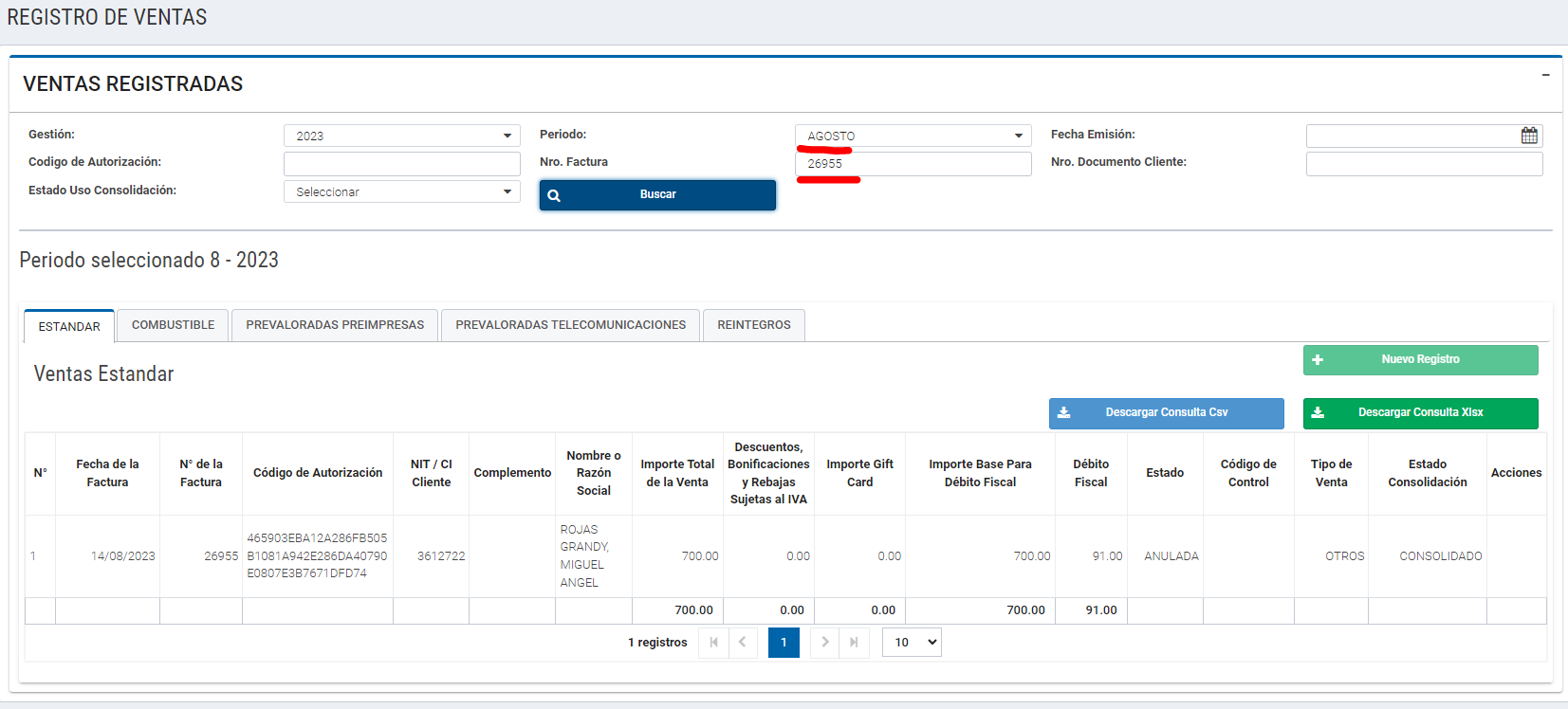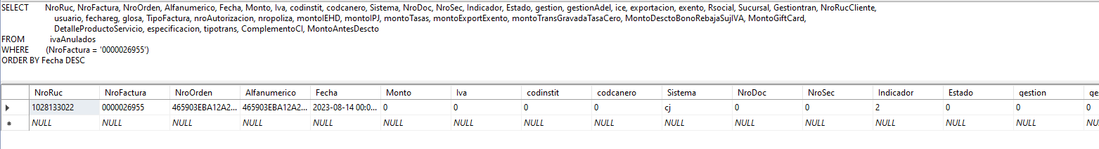 Nos dirigimos a la BD Latino01, en la tabla ivaanulados y agregamos la factura: