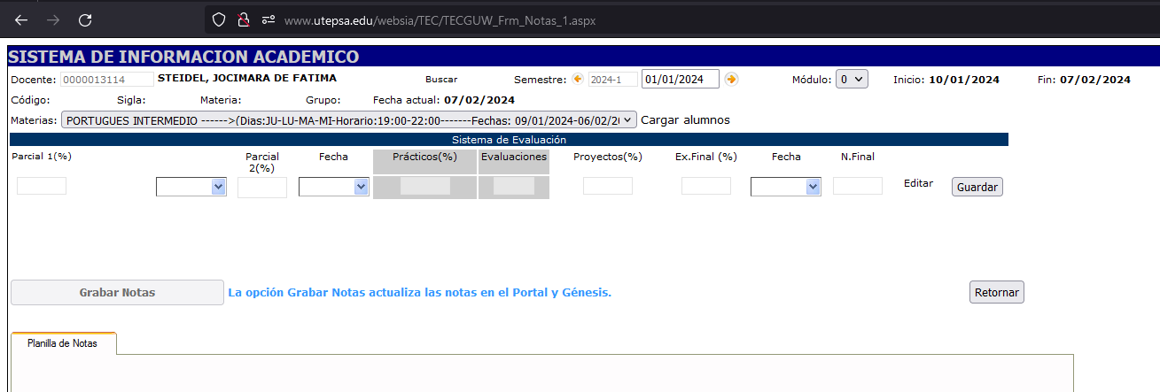 Ingresar a la BD de Cursos_Extension y fijarse la fecha de inicio del curso y verificar que estén dentro de las fechas de clases del semestre, en este caso inicia un día antes
