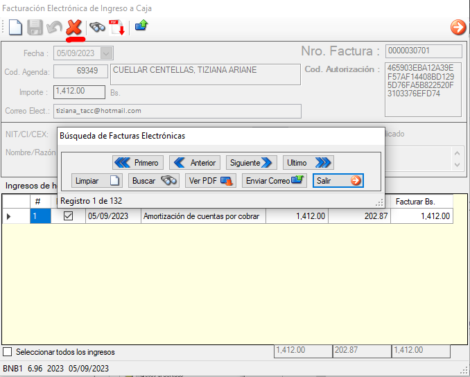 Paso 2: Anulamos la factura del dio, para verificar que no haya sido utilizada la factura